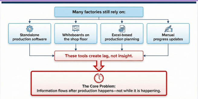 Production delays are rarely caused by a single failure. In most manufacturing businesses, delays are often the result of poor shop floor visibility—managers lack real-time knowledge, supervisors react too late, and decisions are based on outdated data.